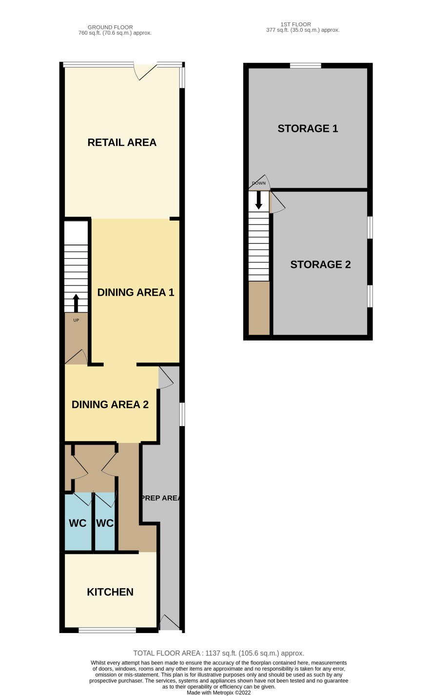 Retail area, two dining areas, kitchen with separate preparation area, WCs