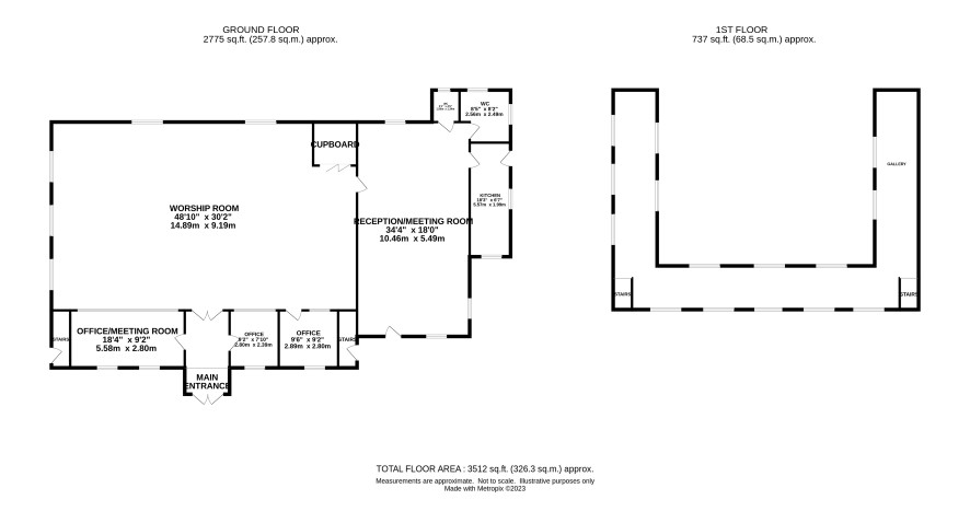 Situated within the sought after village of Grundisburgh some 4 miles from Woodbridge and 7 miles to the north east of Ipswich is this substantial early 19th century chapel with grounds extending to 0.74 acres (0.3 hectares). The property extends to around 2,775 sq ft (257 sq m) on the ground floor and has a first floor gallery (currently enclosed) running the full width and along both sides of the building. The main Worship Room extends to some 48 ft (16.6 m) x 30' (9.1 m) and is complemented by tall stained glass windows. The property also offers meeting rooms, offices, a kitchen, 2 WCs and in our opinion offers tremendous potential for alternative use (STPP). A rare opportunity not to be missed.
