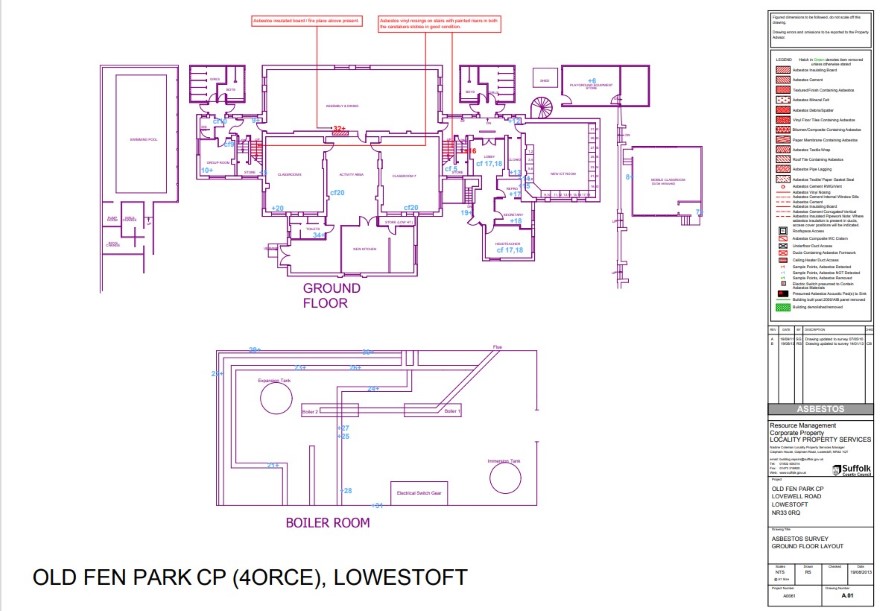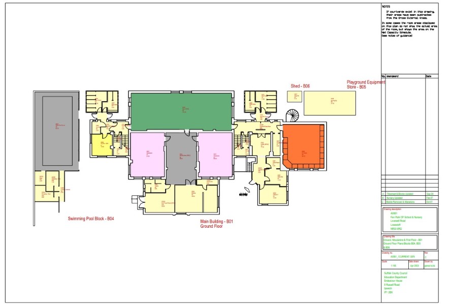 Entrance hall, kitchen, activity area, assembly and dining hall, group room, girls and boys toilets, store rooms, former swimming pool, girls and boys changing rooms, two classrooms, head teachers office, lobby area, secretary office, additional toilets, boiler room