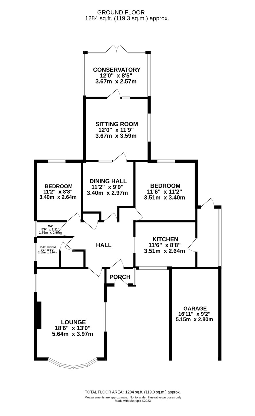 Entrance lobby, hall, lounge, kitchen, dining room, living room, conservatory, 2 bedrooms, shower room and separate w.c.