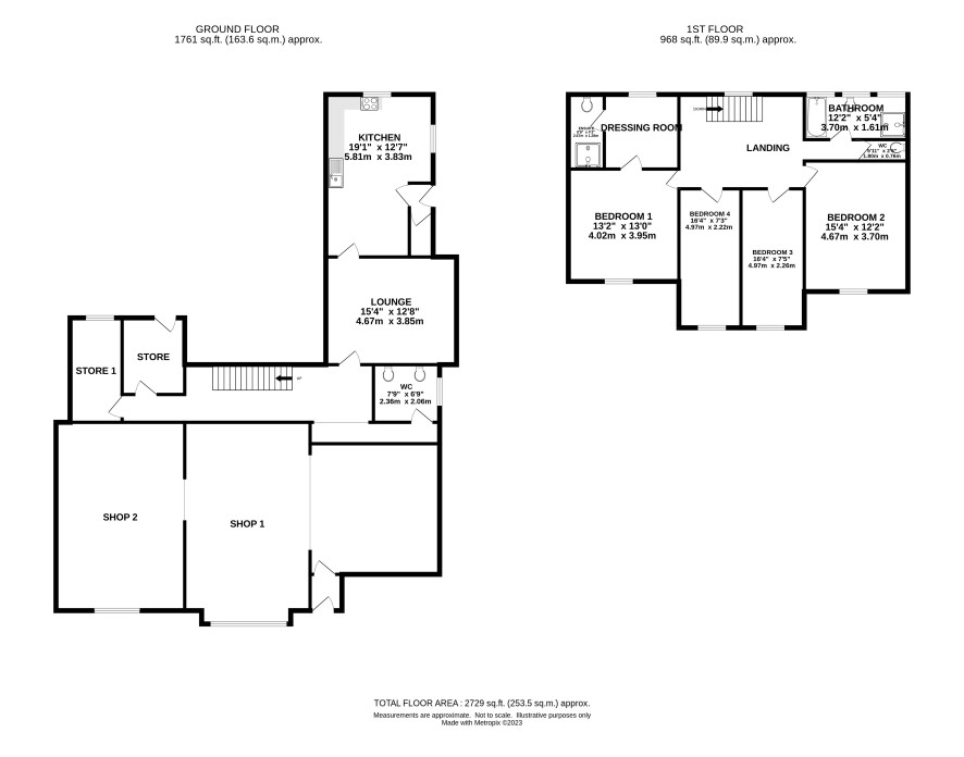 The property would be ideal for an HMO with the necessary planning permission or in its current configuration. This property has two shop areas W.C. two stores and a cellar. The house has lounge, kitchen, four bedrooms one with en-suite shower and dressing room, family bathroom and separate W.C. The total plot is 0.35 of an acre. Holbeach is situated east of Spalding and offers local shopping facilities.