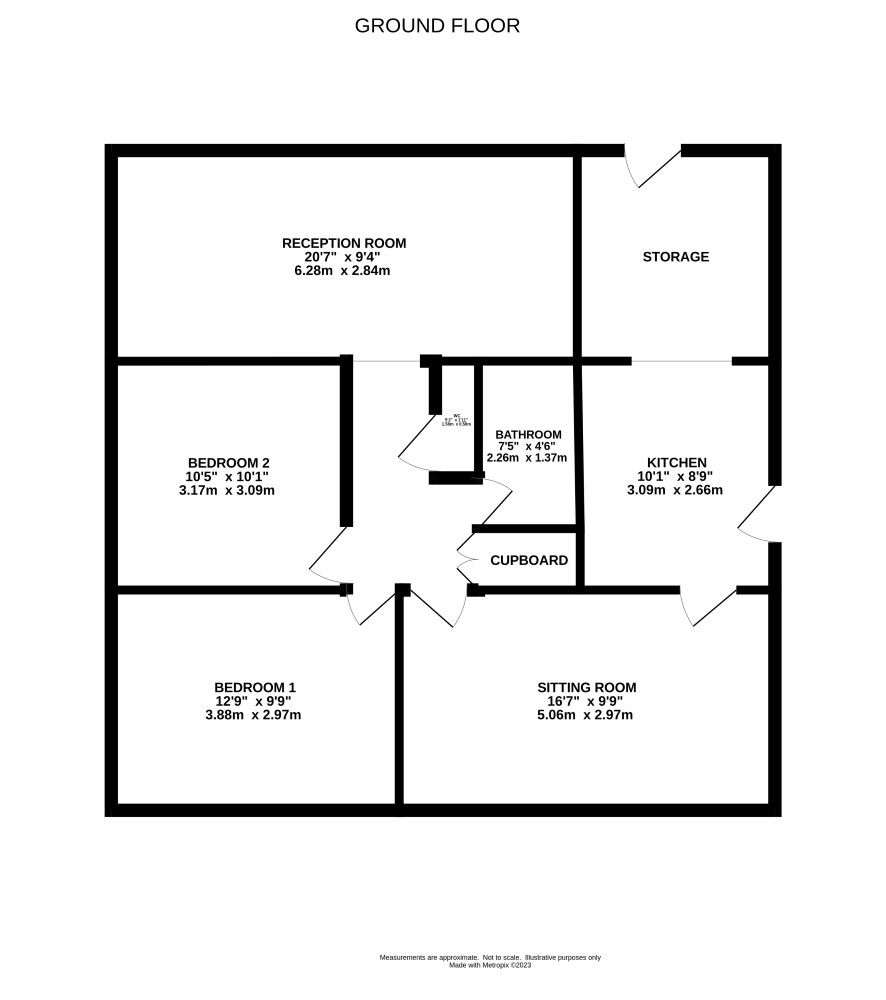 Kitchen, sitting room, inner hallway, two double bedrooms, bathroom and garden room