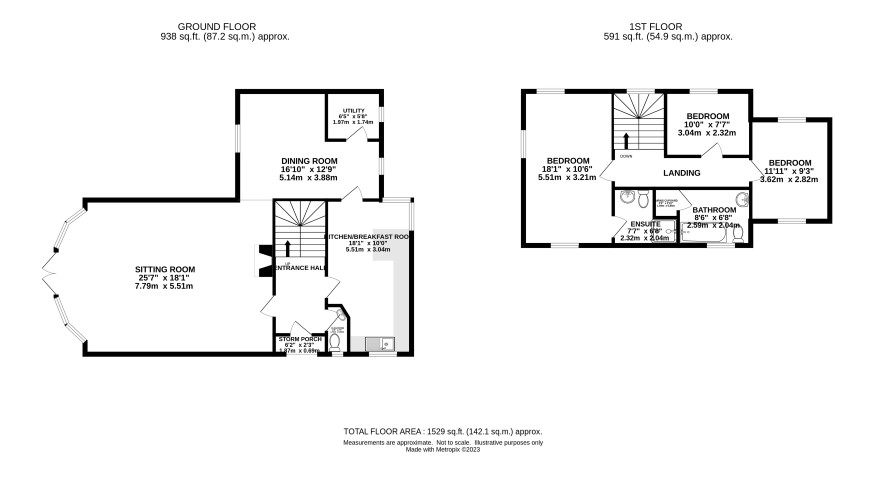 Landing, master bedroom with ensuite, two further double bedrooms, family bathroom.