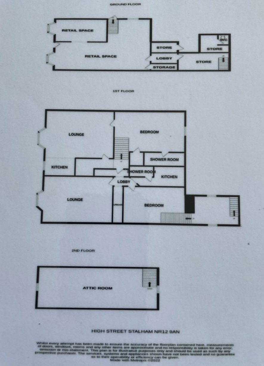 This mixed use property is situated in the heart of the high street. It comprises of a large ground floor retail unit and two self contained one bedroom flats on the first floor accessed from Moore's Yard to the side. The long established owner run pet and fishing tackle shop trades as Broadland Angling and due to retirement will be sold with vacant possession. The property requires improvement and offers redevlopment potential. According to the valuation office website the shop has an area of 174.7 sq/m and a rateable value of £12,250 with effect from 1st April 2023.