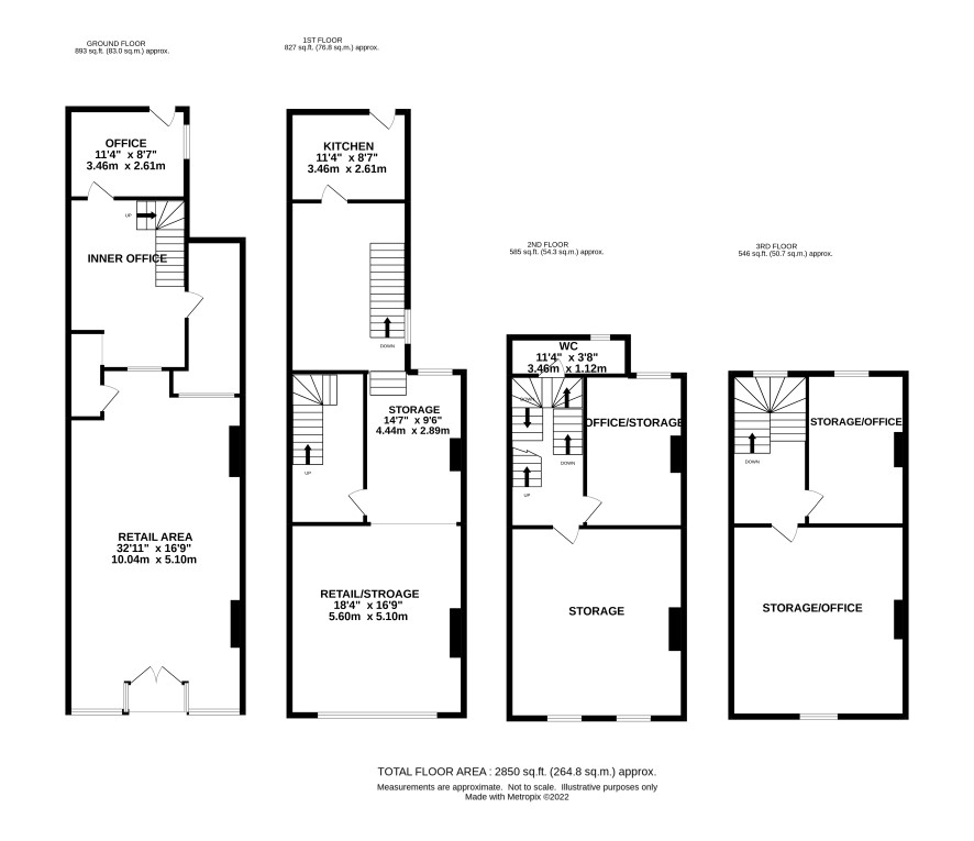 Various offices, toilets and storage rooms with access to first floor provided by rear external staircase.