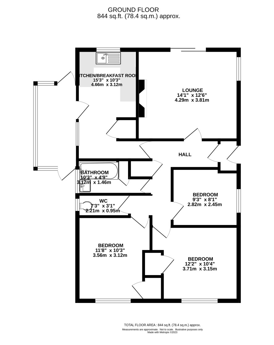 Hall, lounge, kitchen/breakfast room, three bedrooms, bathroom, separate wc.