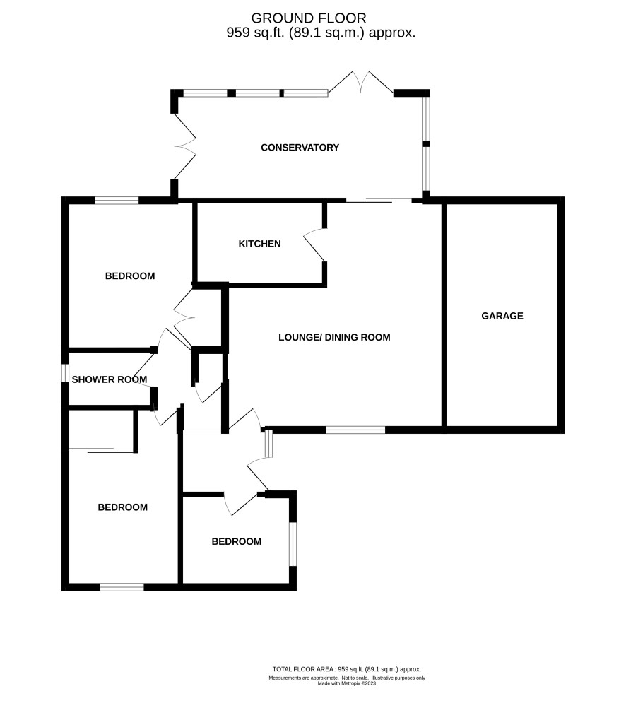 Hall, lounge/ dining room, kitchen, conservatory, three bedrooms, en-suite to front bedroom and shower room