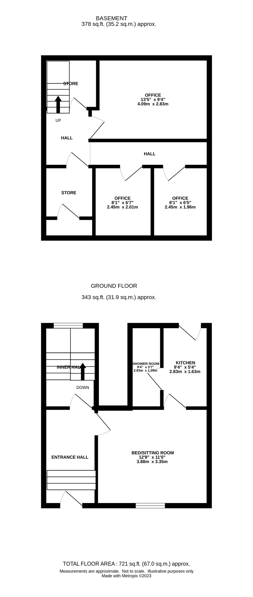 Hall, lounge/bedroom, kitchen area, shower room.