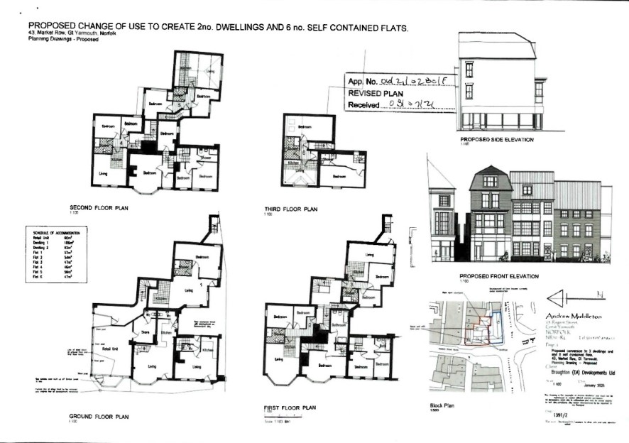 Various consents have previously been obtained on this building however the current proposal is to provide for 2 four bedroom townhouses fronting onto Howard Street North, 6 one and two bedroom flats and a retail unit fronting Market Row. Planning ref 06/21/0280/F. This application is currently under review and purchasers would need to complete the planning process.