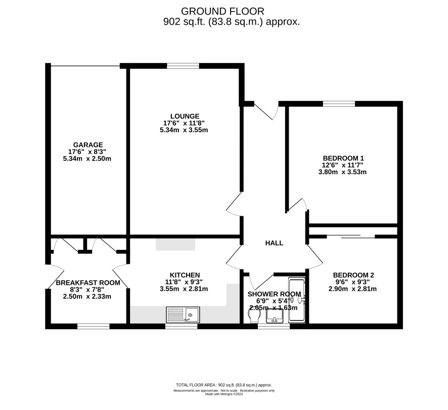 Hall, lounge, kitchen, breakfast room, two bedrooms and a shower room