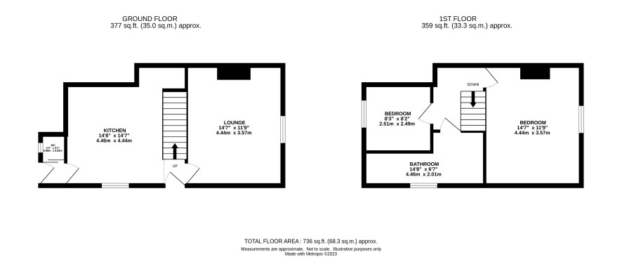 Two bedrooms, bathroom
