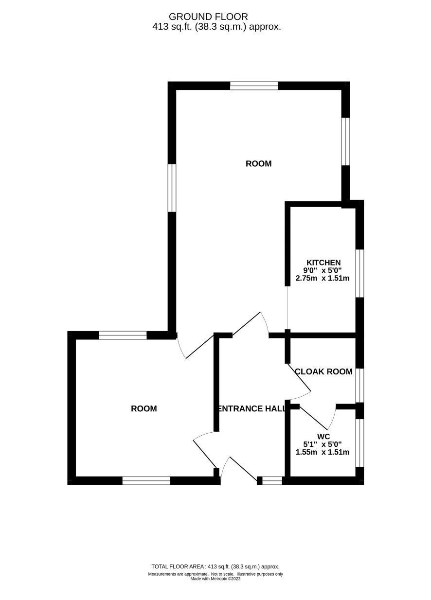 Entrance hall, wc, kitchen, two rooms
