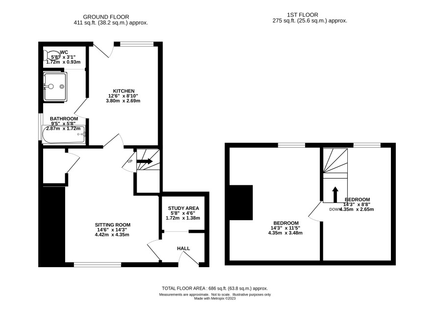 Hall, living room, kitchen, bathroom, separate WC
