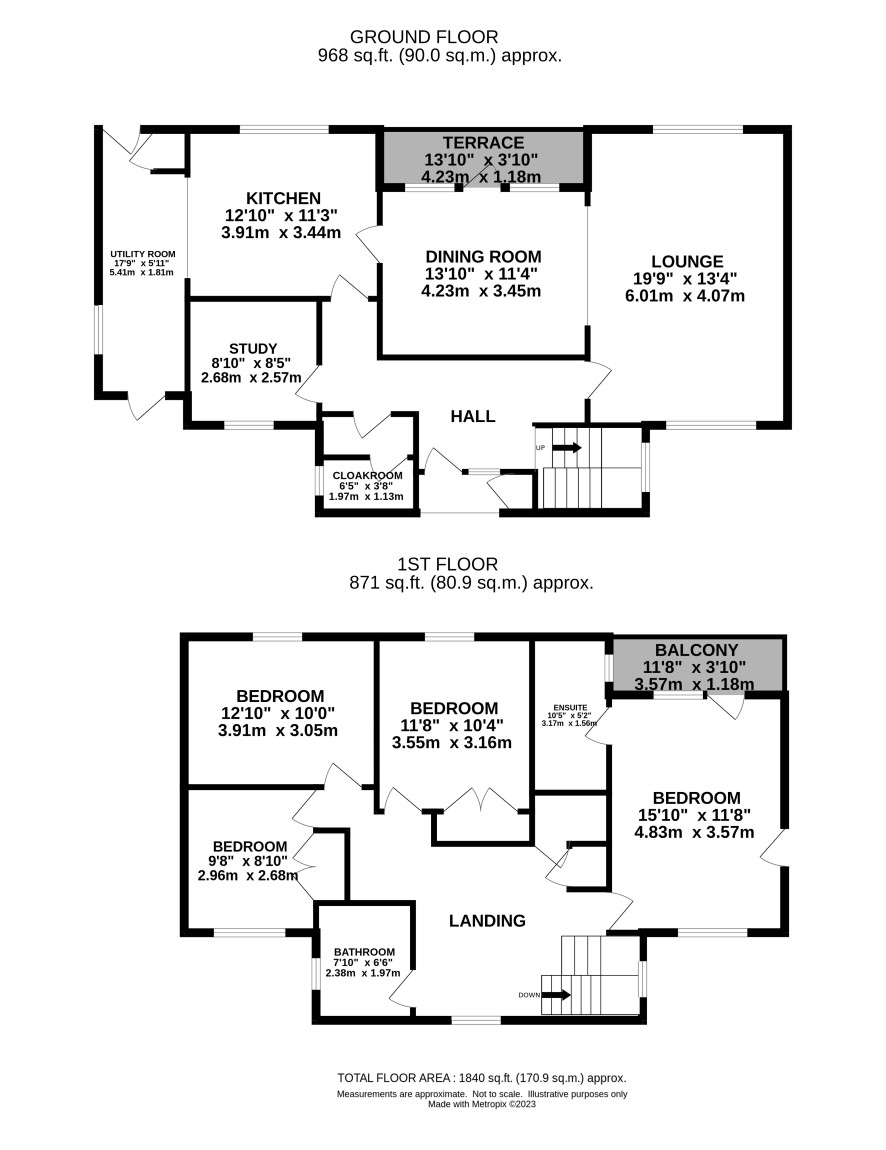 Landing, master bedroom with ensuite bathroom, three further bedrooms, family bathroom