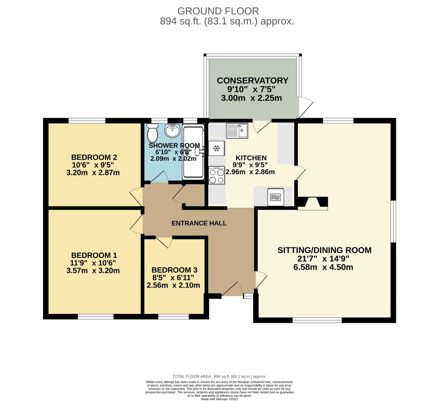 Three bedrooms, bathroom, kitchen, conservatory, living room/diner