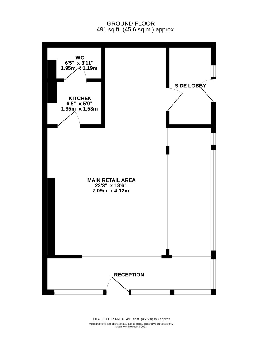 Main salon/retail area, kitchen, cloakroom