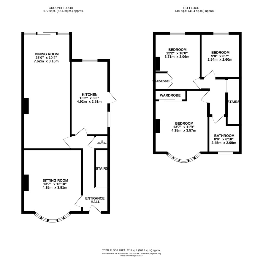 Hall, dining room, sitting room, kitchen, WC, 3 bedrooms and bathroom