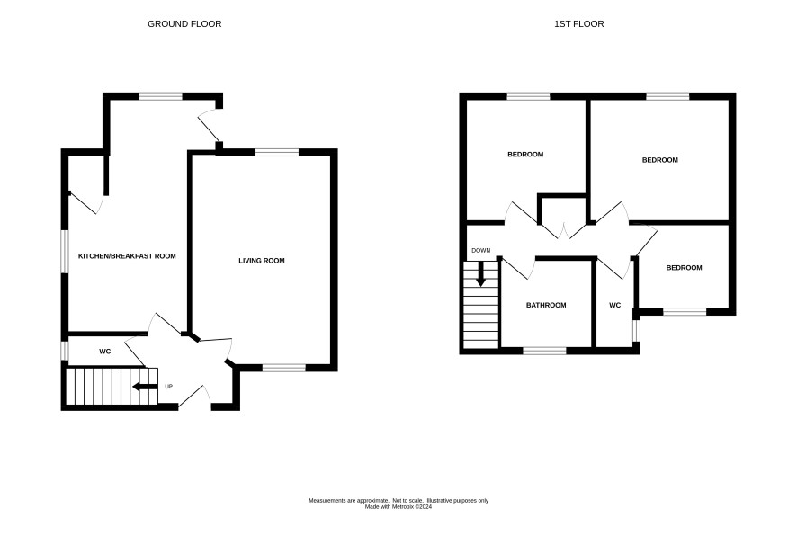 Three bedrooms, bathroom, separate WC