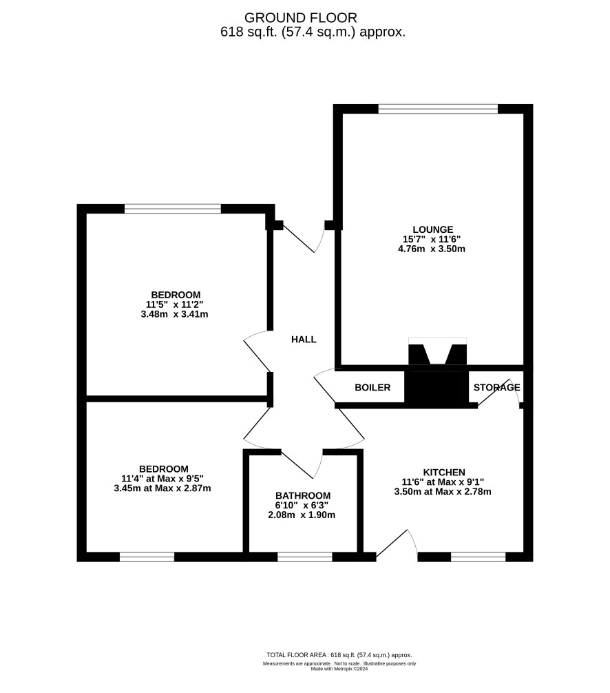 Entrance hall, two bedrooms, lounge, bathroom, kitchen