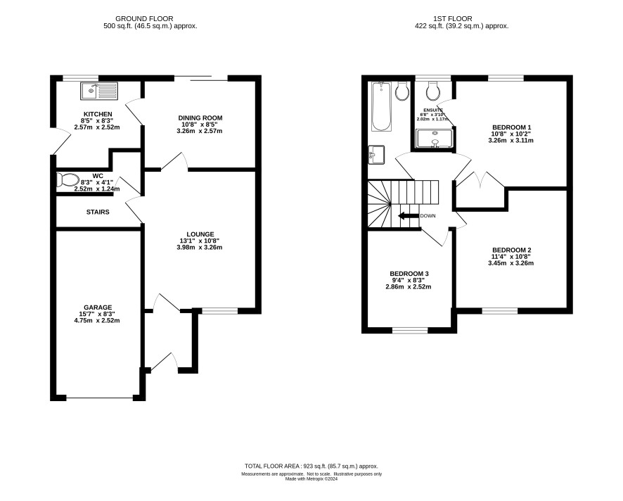 Master bedroom with en-suite shower, two further bedrooms and a bathroom.