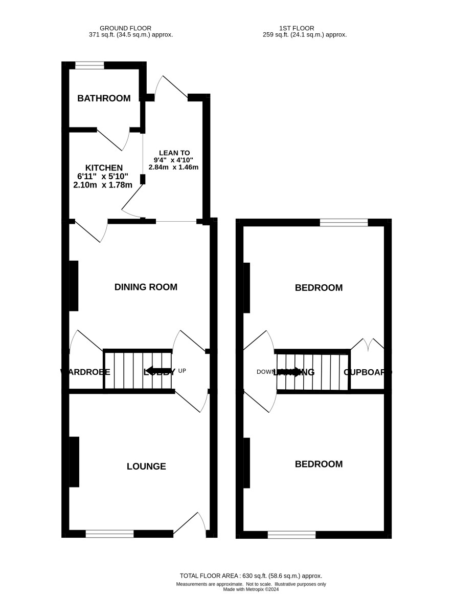 Small front garden, fenced rear garden with potential for off road parking
