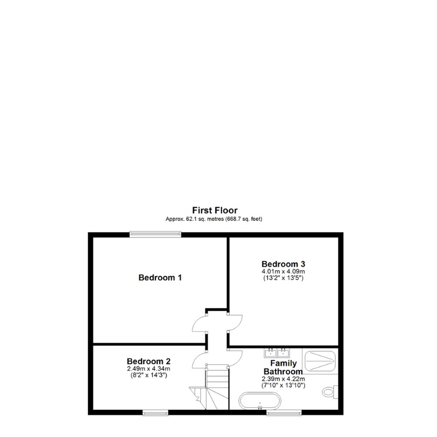 Three bedrooms and a bathroom.