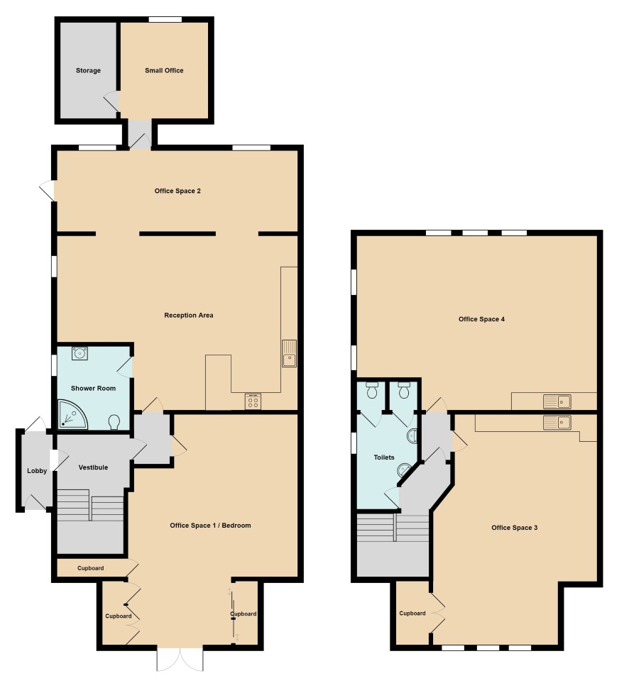 Kitchen diner Living room Utility room Shower room Office