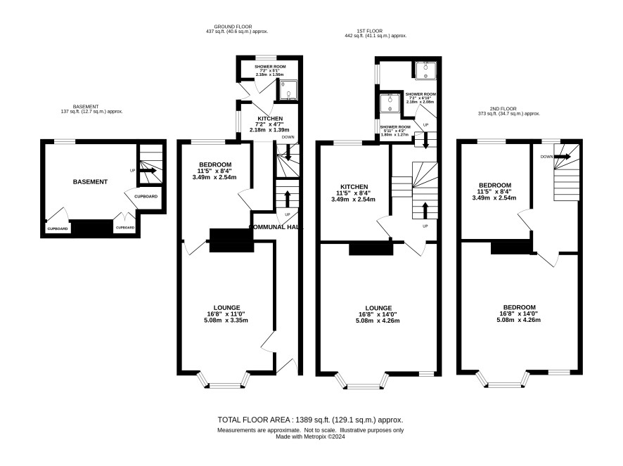 Stairs from communal hall, landing, shower room, separate w.c., kitchen, sitting room, stairs to third floor, two double bedrooms.