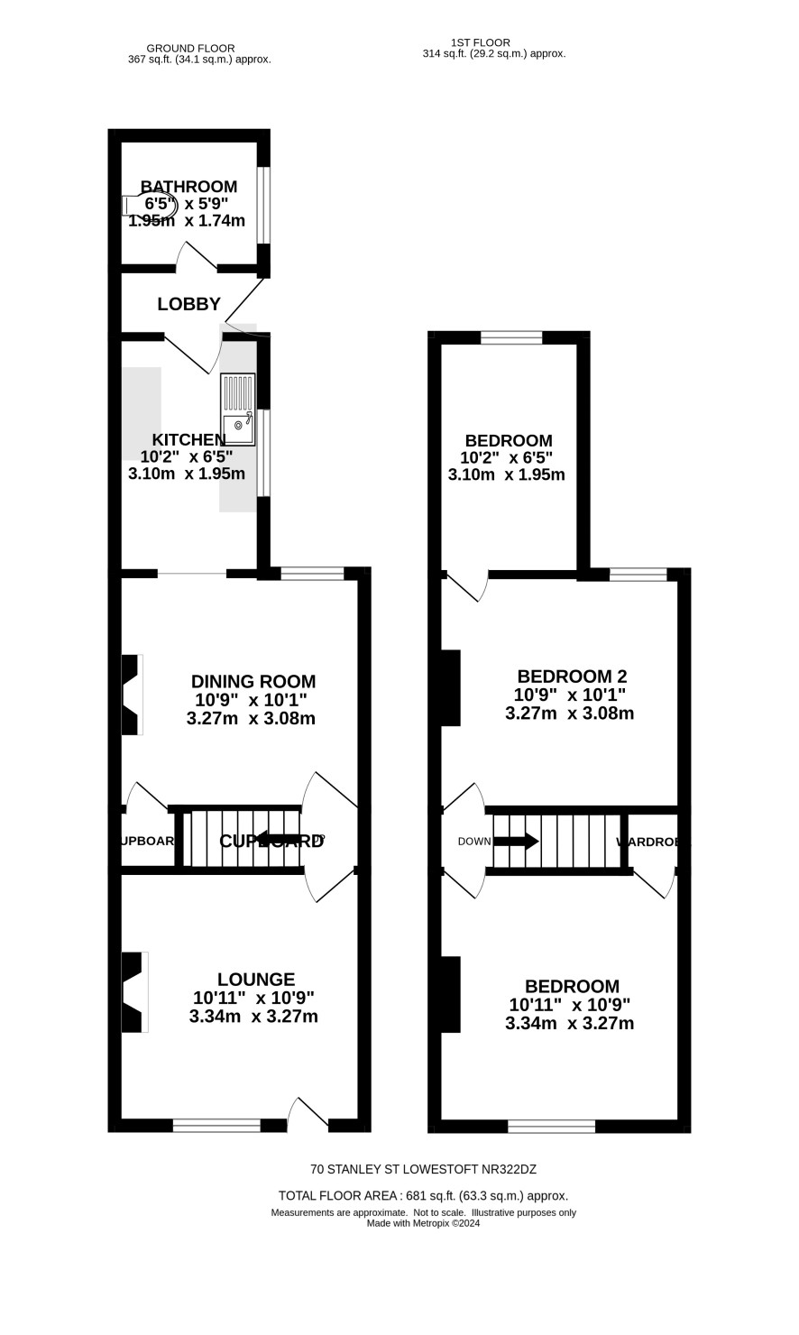 Small front garden. good size rear garden with rear access.