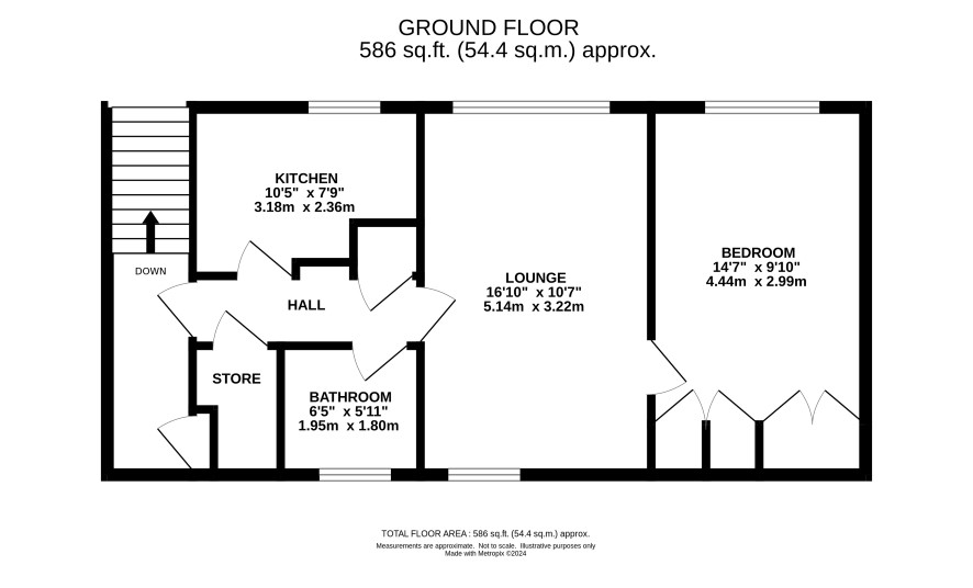 External staircase to first floor shared landing, private hall, kitchen, bathroom, lounge, double bedroom