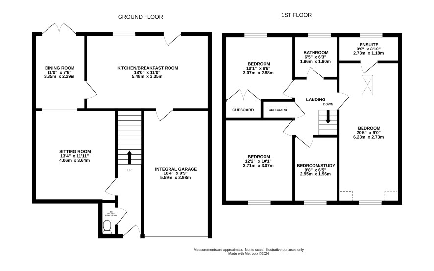 Principal bedroom with ensuite, two further double bedrooms, study/bedroom 4, main bathroom.