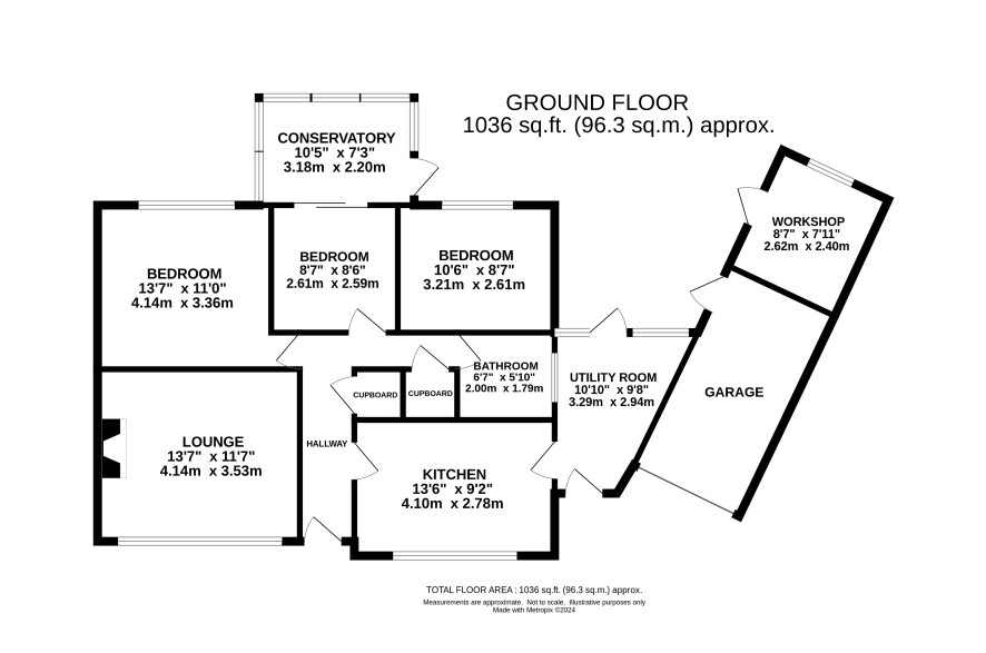 Hallway, lounge, kitchen, three bedrooms, conservatory, bathroom, utility room
