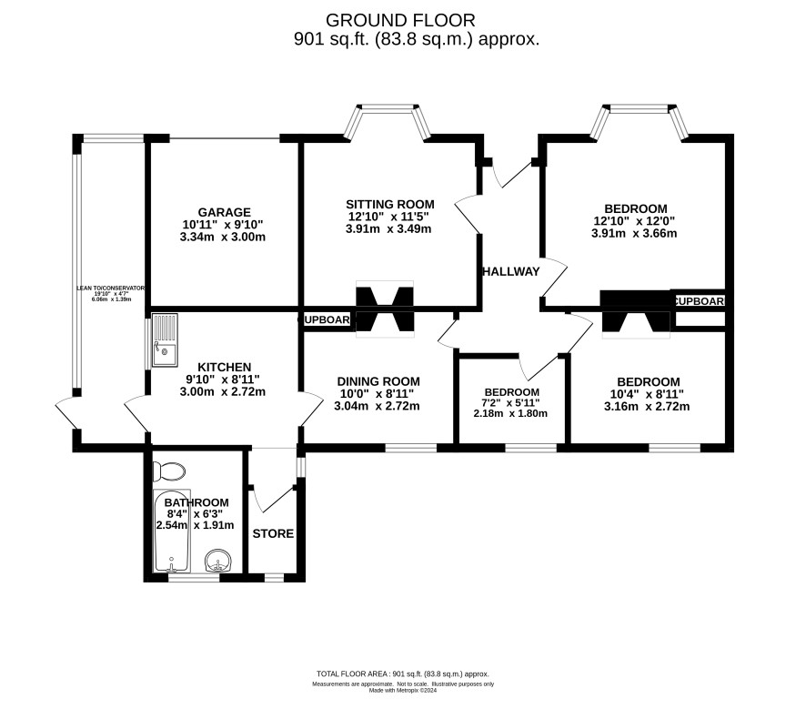 Entrance hall, sitting room, dining room, three bedrooms, kitchen, pantry, conservatory, bathroom
