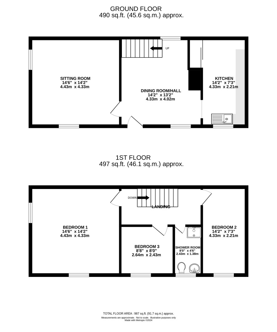 Three bedrooms and a shower room.