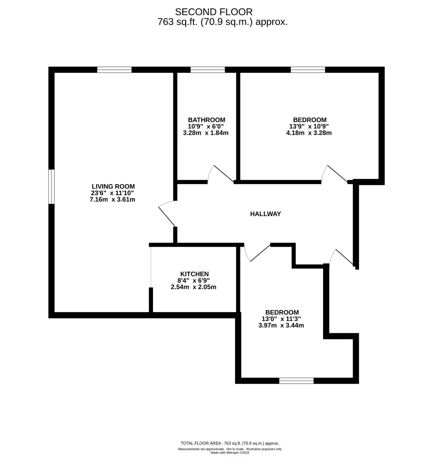 An attractive 2nd (top) floor flat with a share of the Freehold