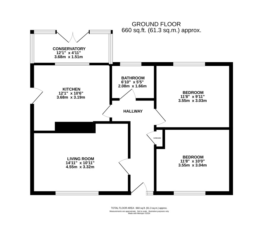 Entrance hall, sitting room, two bedrooms kitchen, bathroom