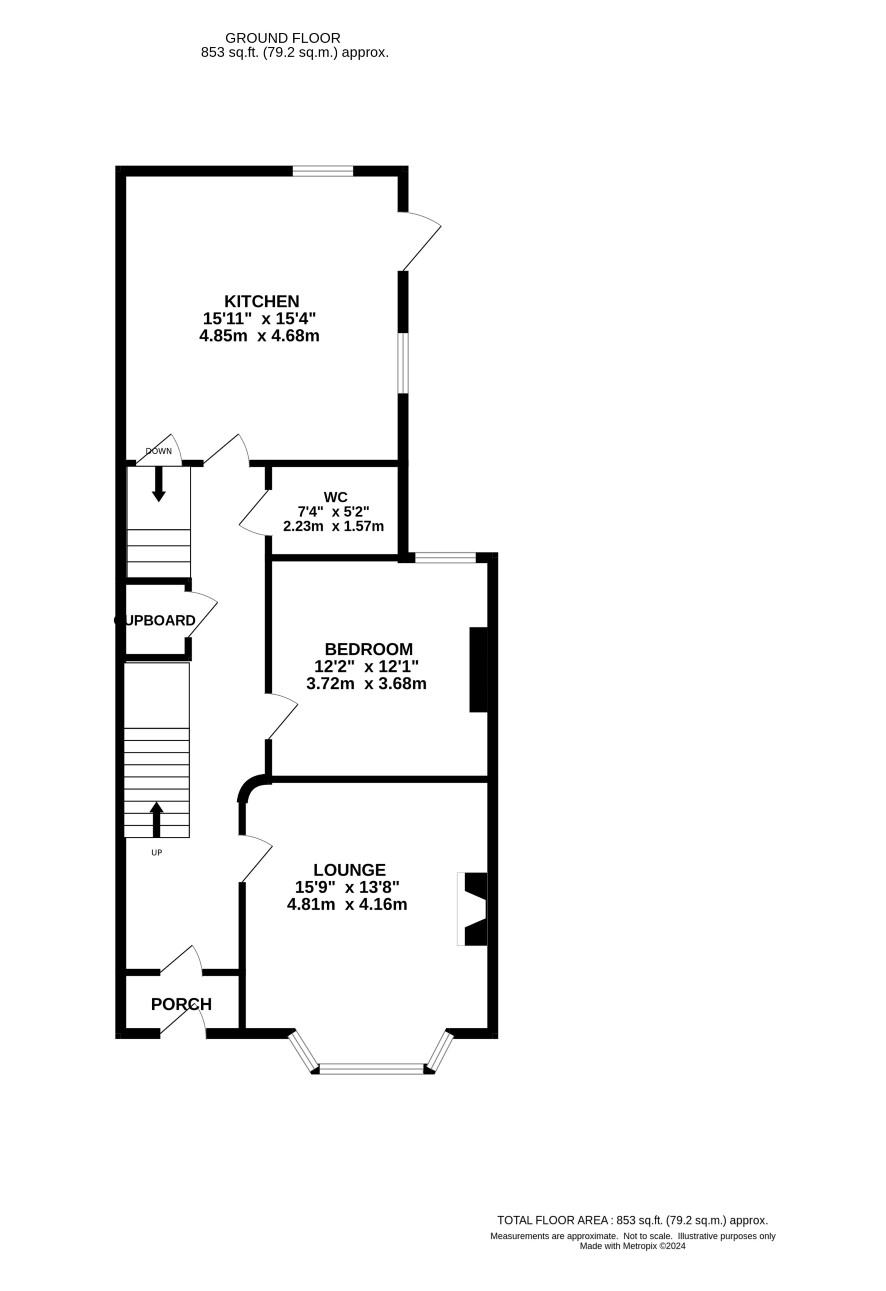 Bedroom, shower and separate w.c. Short staircase up to three bedrooms