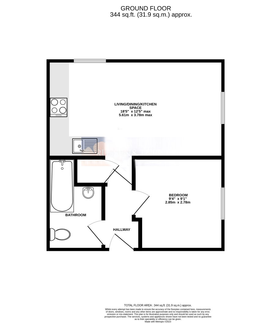 Entrance hall, open plan living/ kitchen space, bedroom and bathroom