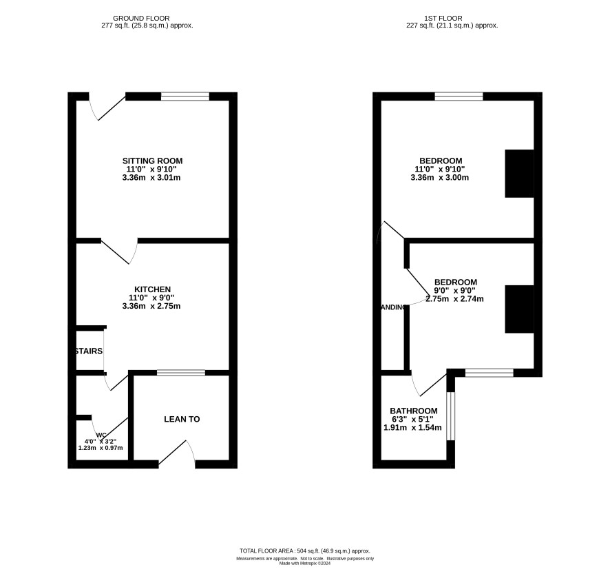 Two bedrooms, bathroom