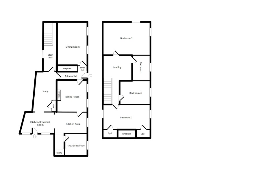Entrance hall, inner hall, sitting room, dining room, study, kitchen / breakfast room, shower / bathroom, stair hall