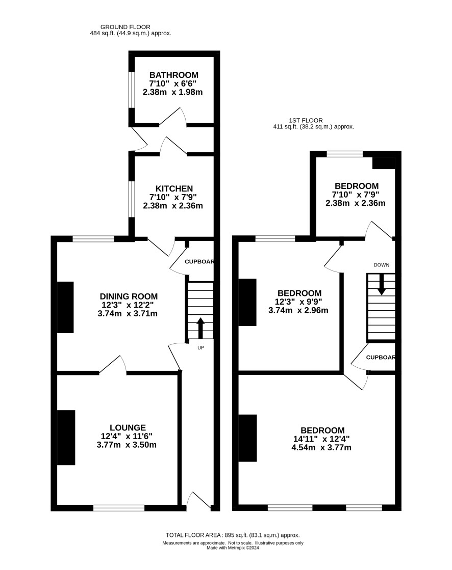 Small front garden, enclosed rear garden non bisected