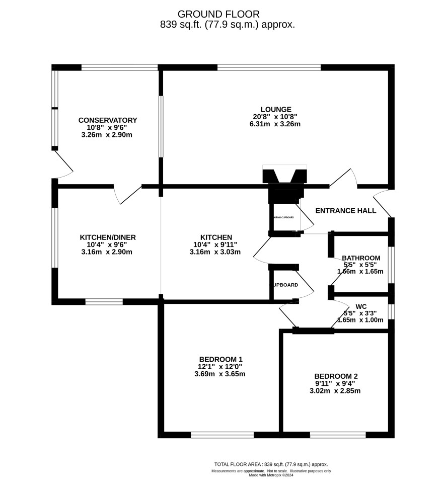 Entrance hall, lounge, kitchen/dining room, two bedrooms, bathroom with separate cloakroom.