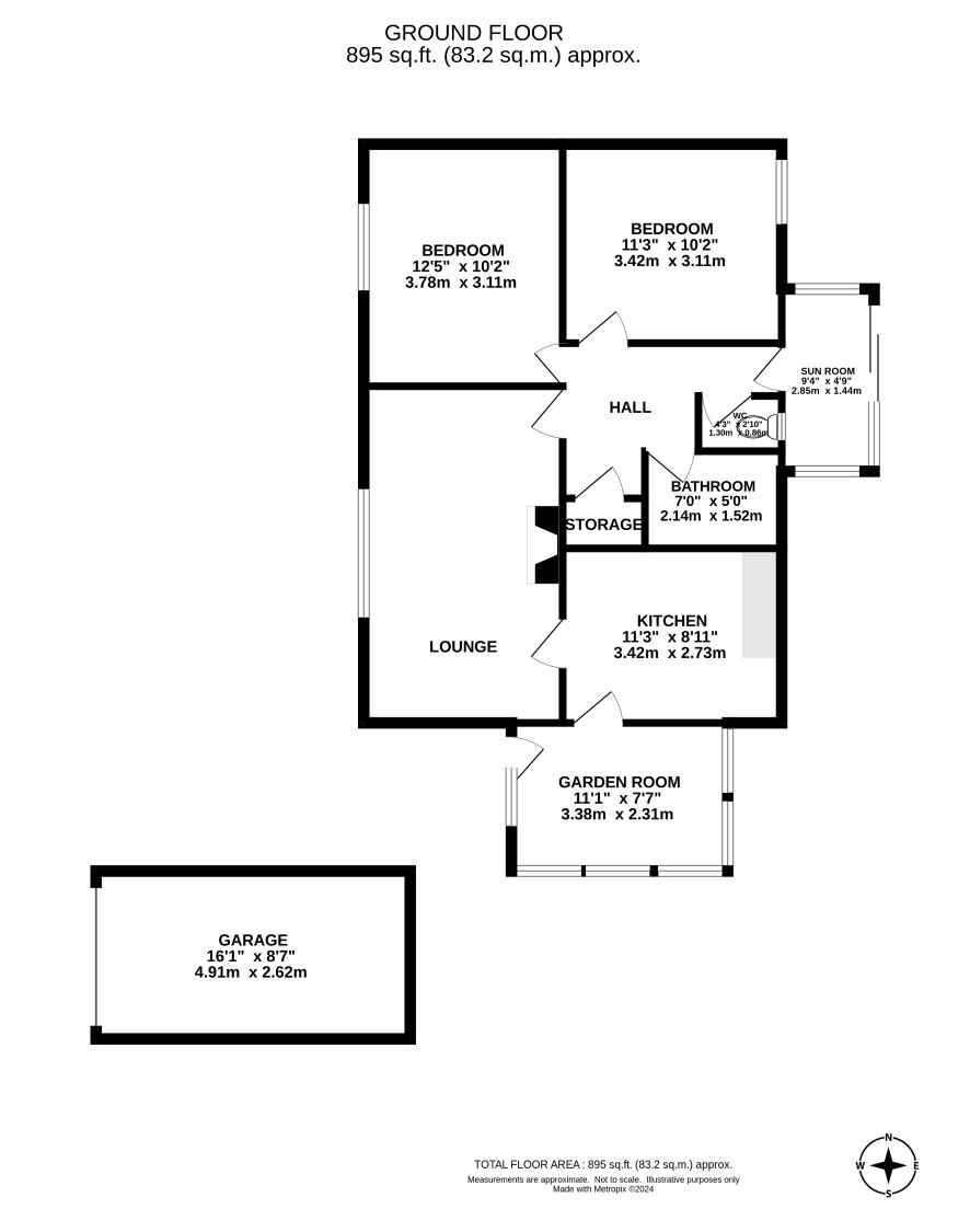 Porch, kitchen, lounge, inner hall, two bedrooms, bathroom and sun room to rear