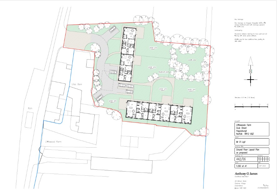 This development site has full planning permission to convert these two light industrial units into five single storey dwelling. The planning permission was granted in March 2023 by North Norfolk Council and the planning reference is PF/23/0653 and allows an immediate start for a local builder/developer (subject to the planning conditions). The five dwellings are all three bedrooms with a pair comprising of two larger and three in the other with slightly smaller. The site is nestled to the rear of Littlewoods farm which comprises of a Farmhouse and a complex of converted barns and is located in Happisburgh a North Norfolk coastal village known for its famous lighthouse.
