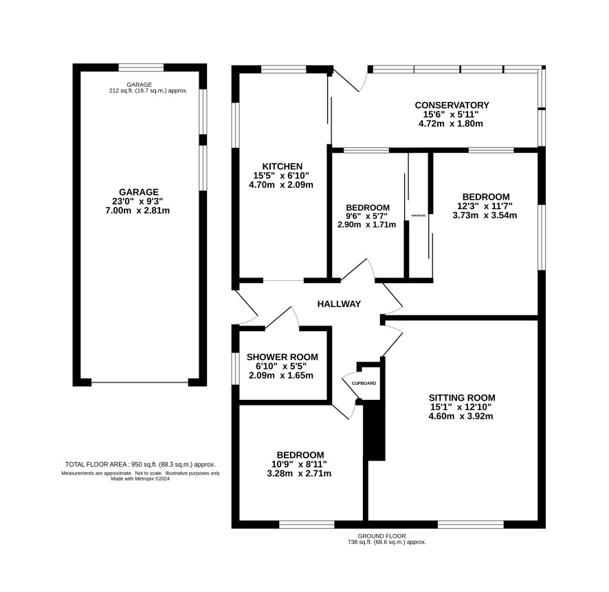 Entrance hall, sitting Room, kitchen, three bedrooms, garden room and wetroom.