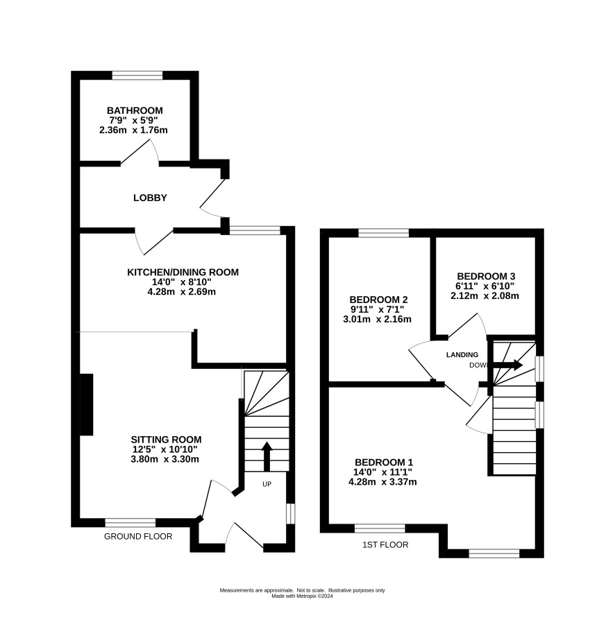 Entrance, sitting room opening into kitchen dining area, inner lobby and ground floor bathroom