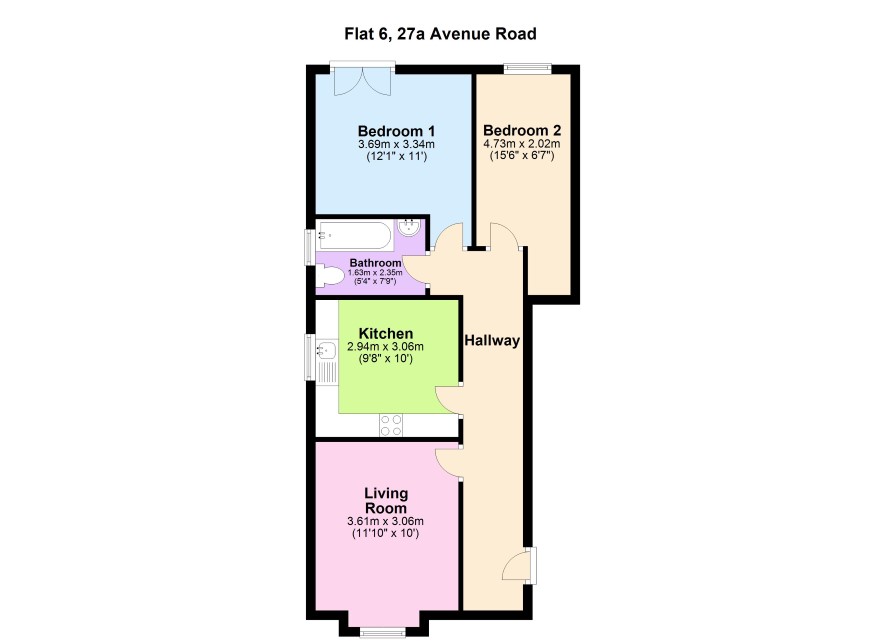 Entrance hall, living room, kitchen, two bedrooms, bathroom