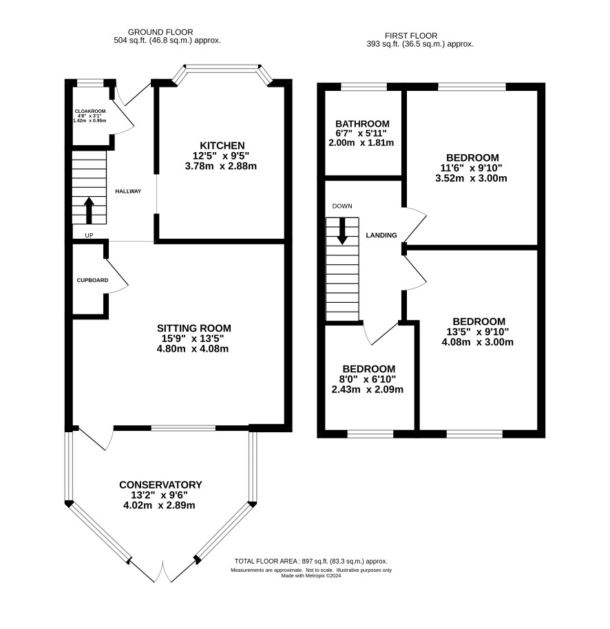 Entrance hall, kitchen, sitting room, conservatory, cloakroom.