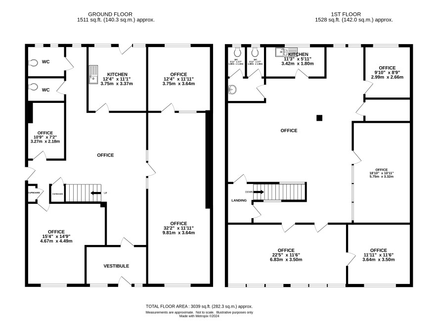 A two storey semi-detached office building is now vacant - for many years it has been offices for a telecommunications/data and security service provider which has re-located. The property which is in good condition and having been refurbished to provide high quality and versatile internal partitioned office accommodation. With Cat 5 Data cabling, integrated LED lighting and comfort cooling. Vestibule with facial recognition entry, ten office/areas, kitchen and two cloakrooms on the ground floor and kitchenette and two cloakrooms on the first floor. Outside: Parking to front and rear for approximately 8 cars. The property extends to approximately 282.2sq m (3037 sq ft) has gas fired heating and is fully double glazed.