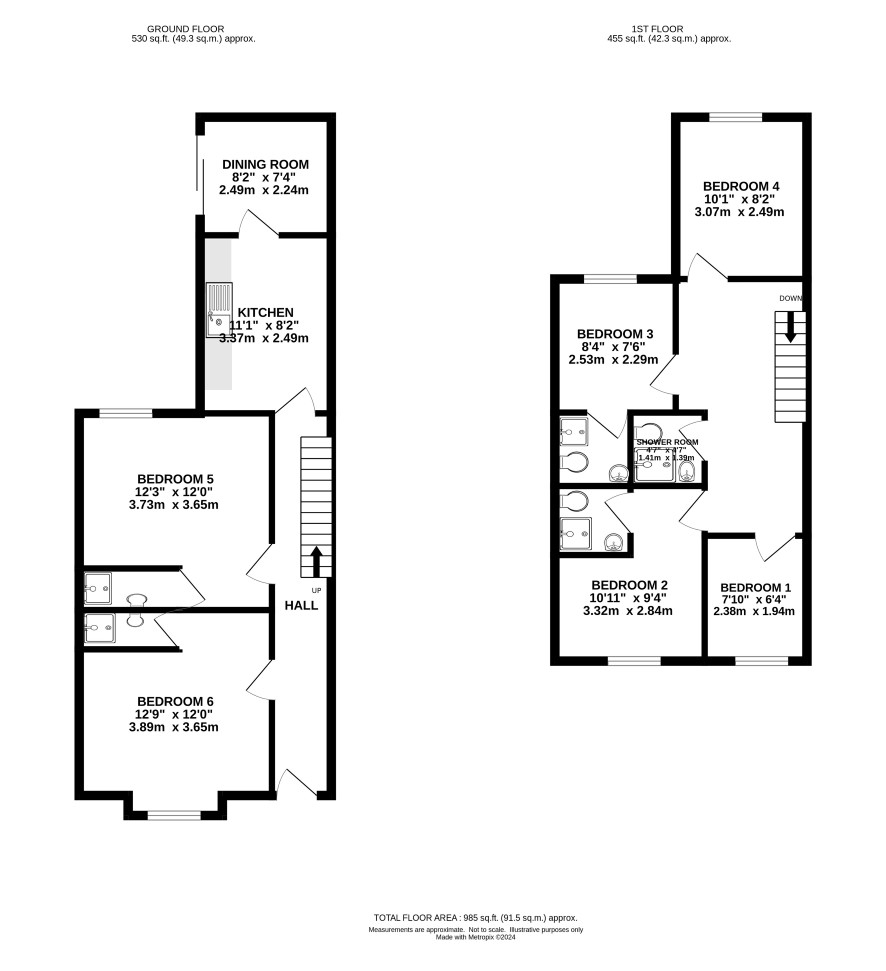 Hall two bedrooms with en-suites, kitchen and a dining room.